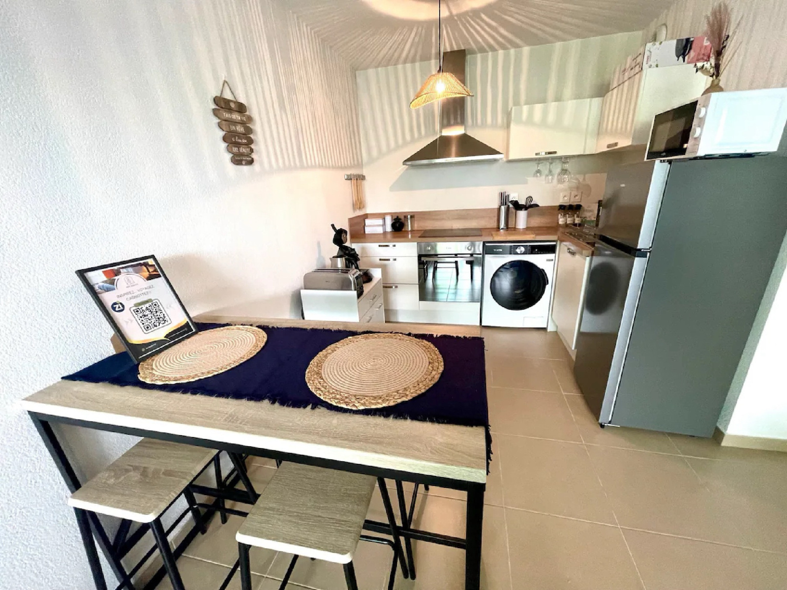 Il se compose d'une entrée avec rangement , un WC individuel, une salle de bain, une cuisine américaine équipée, une chambre, un salon donnant sur belle terrasse .