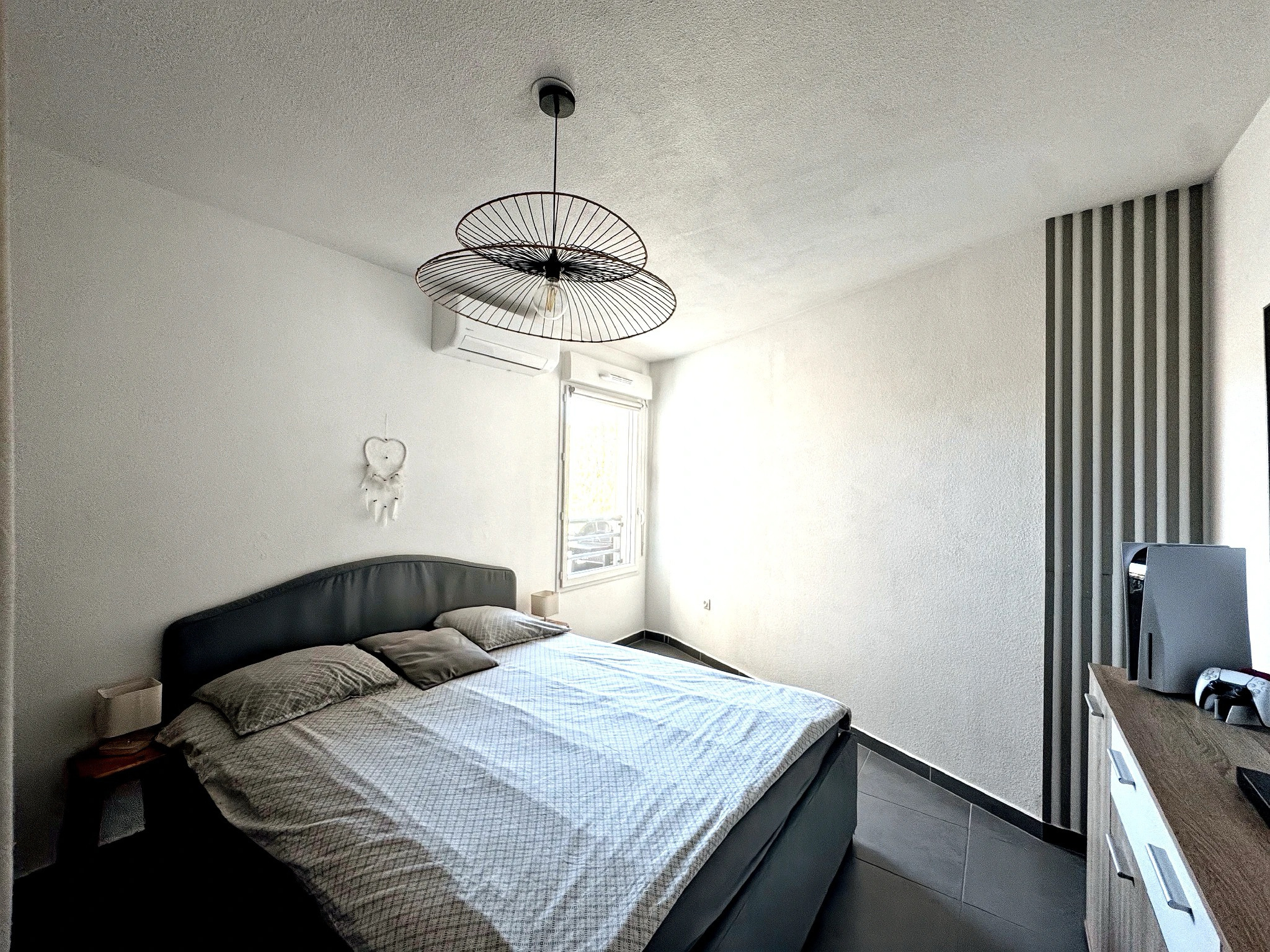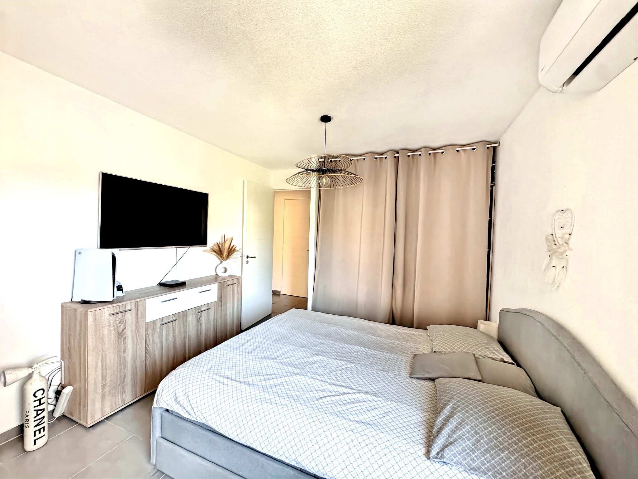 Il se compose d' une entrée accueillante avec placard intégré pour un rangement optimisé, un séjour lumineux de 23m² donnant accès à un agréable balcon de 7m² orienté côté jardin, une cuisine américaine entièrement équipée, deux chambres spacieuses, toutes deux dotées de grands dressings, une salle de bain fonctionnelle avec baignoire et double vasque, un WC individuel.