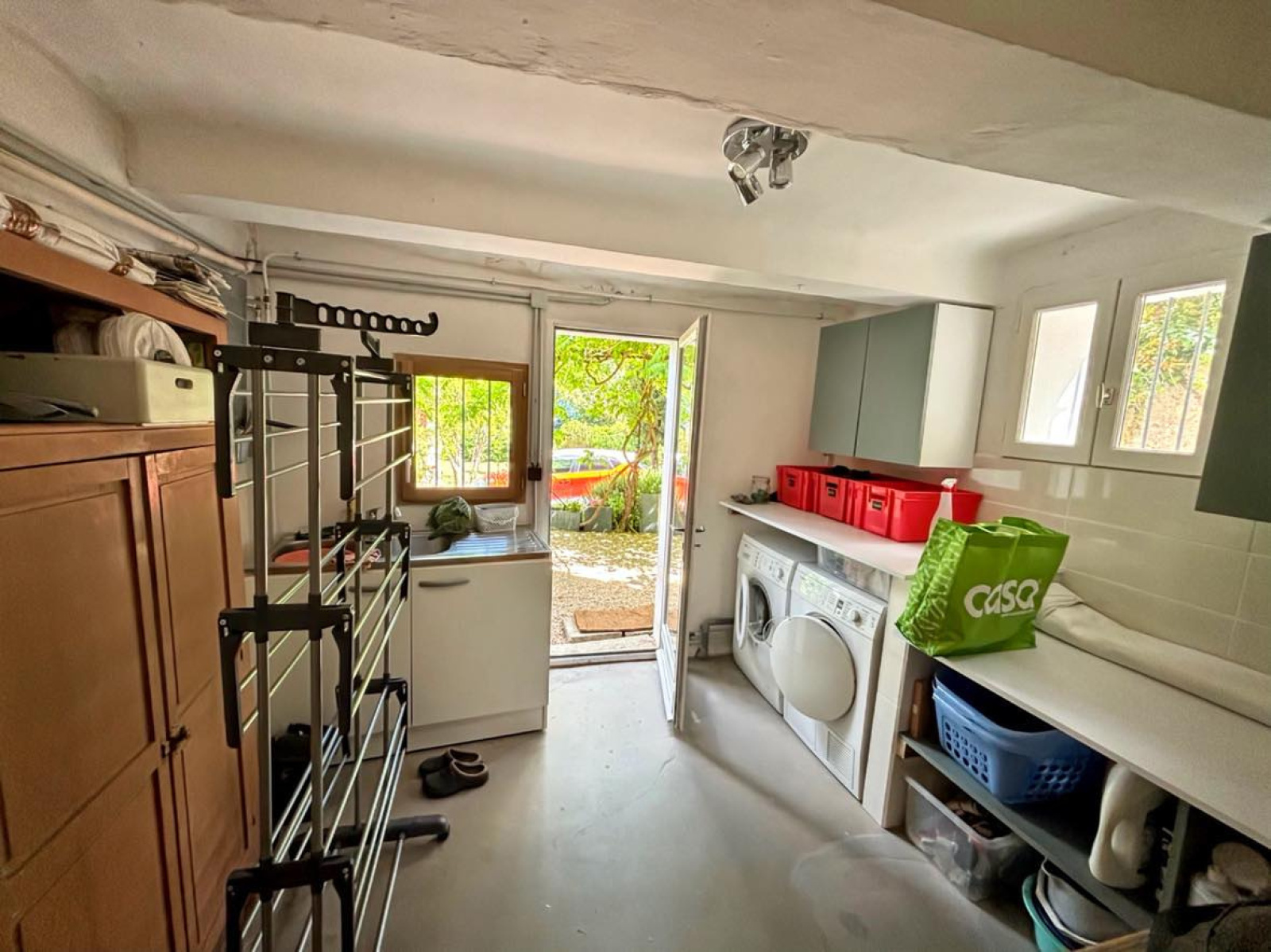 En rez-de-jardin, une buanderie, cave voutée, véranda.